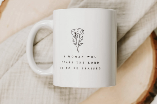 Christian Bible Verse Mug - A Women Who Fears the Lord Shall Be Praised - Proverbs 31